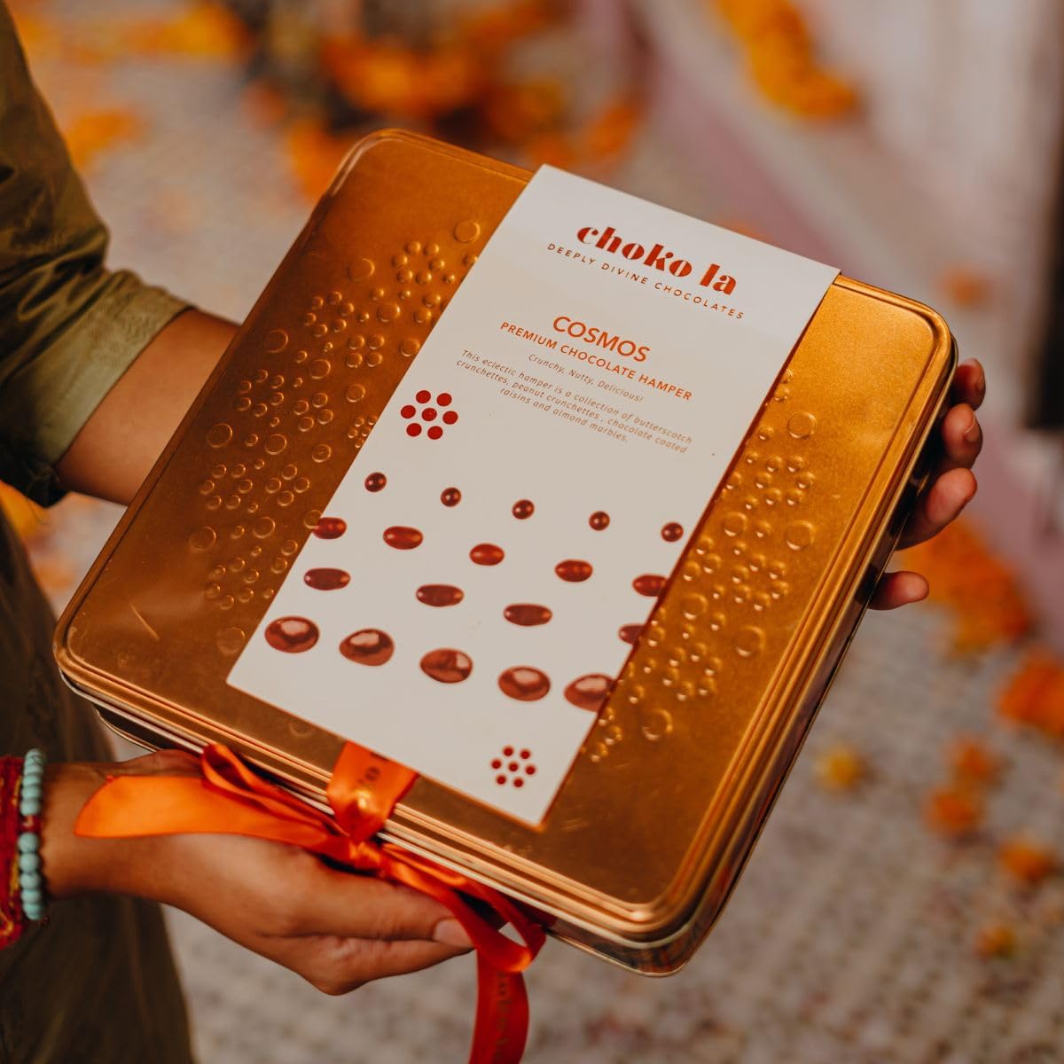 Here's a perfect gourmet gift that is perfect for any occasion. A well made tin box with beautifully presented chocolate coated almonds, raisins, peanuts and butterscotch pieces.