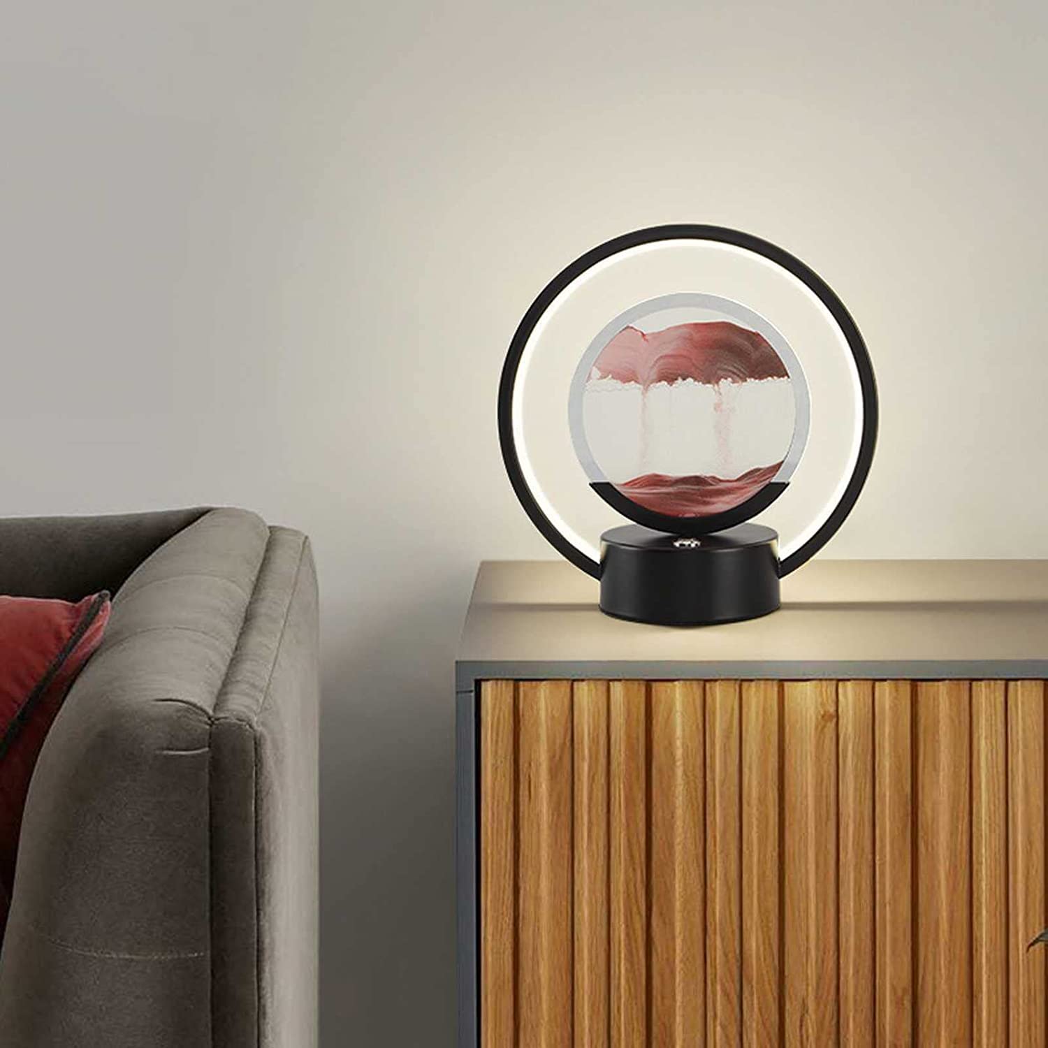 Hourglass step aside, there's a prettier boy in town! This is a decorative and interactive lamp with sand suspended in a liquid. The sand falls slowly to form novel landscapes each time. The presence of little air pockets introduces randomness in the closed system.