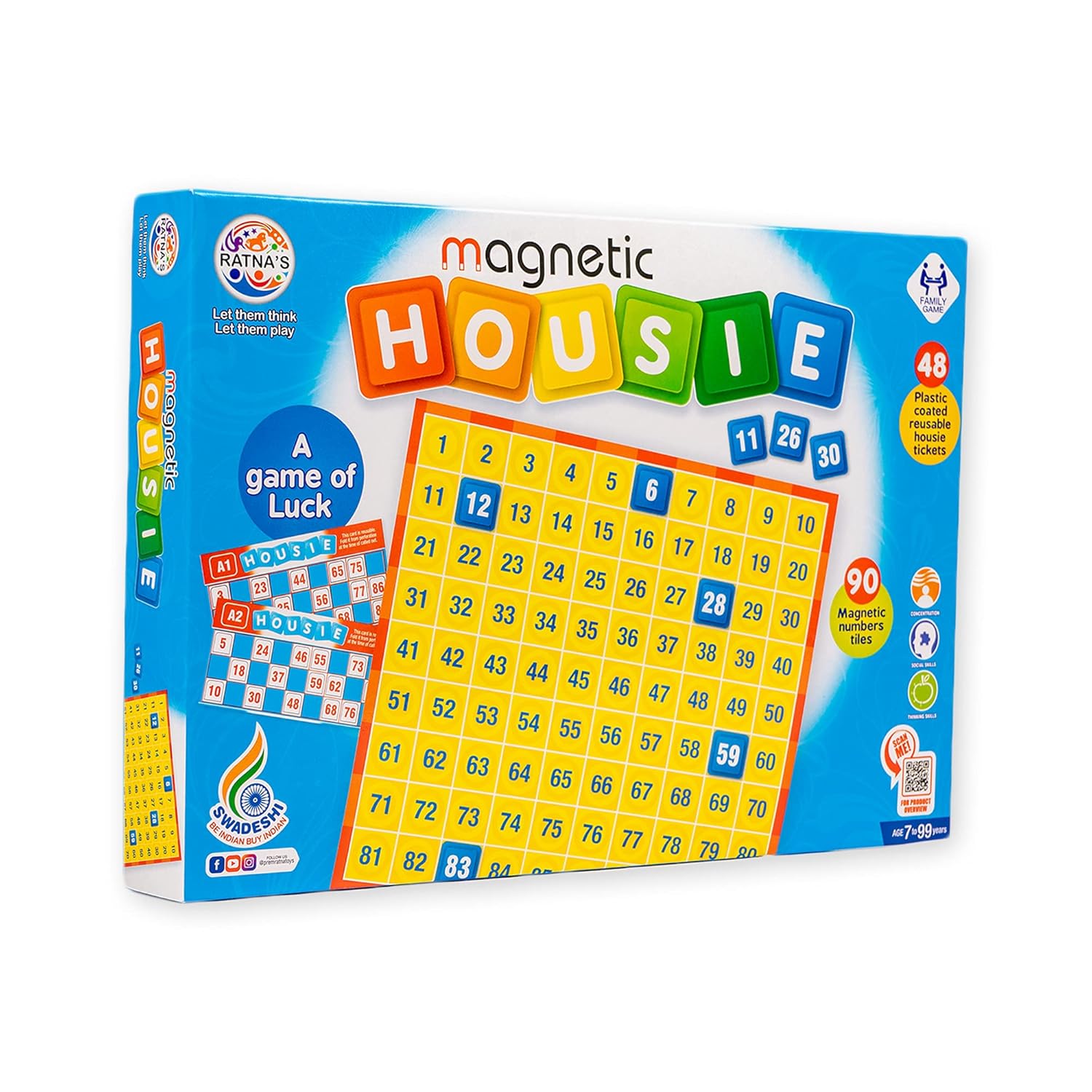 Housie is the game you need if you want to play the popular game of Tombola. It contains a board, some chips that can be laid down on the board to signify number being called out from the pile.